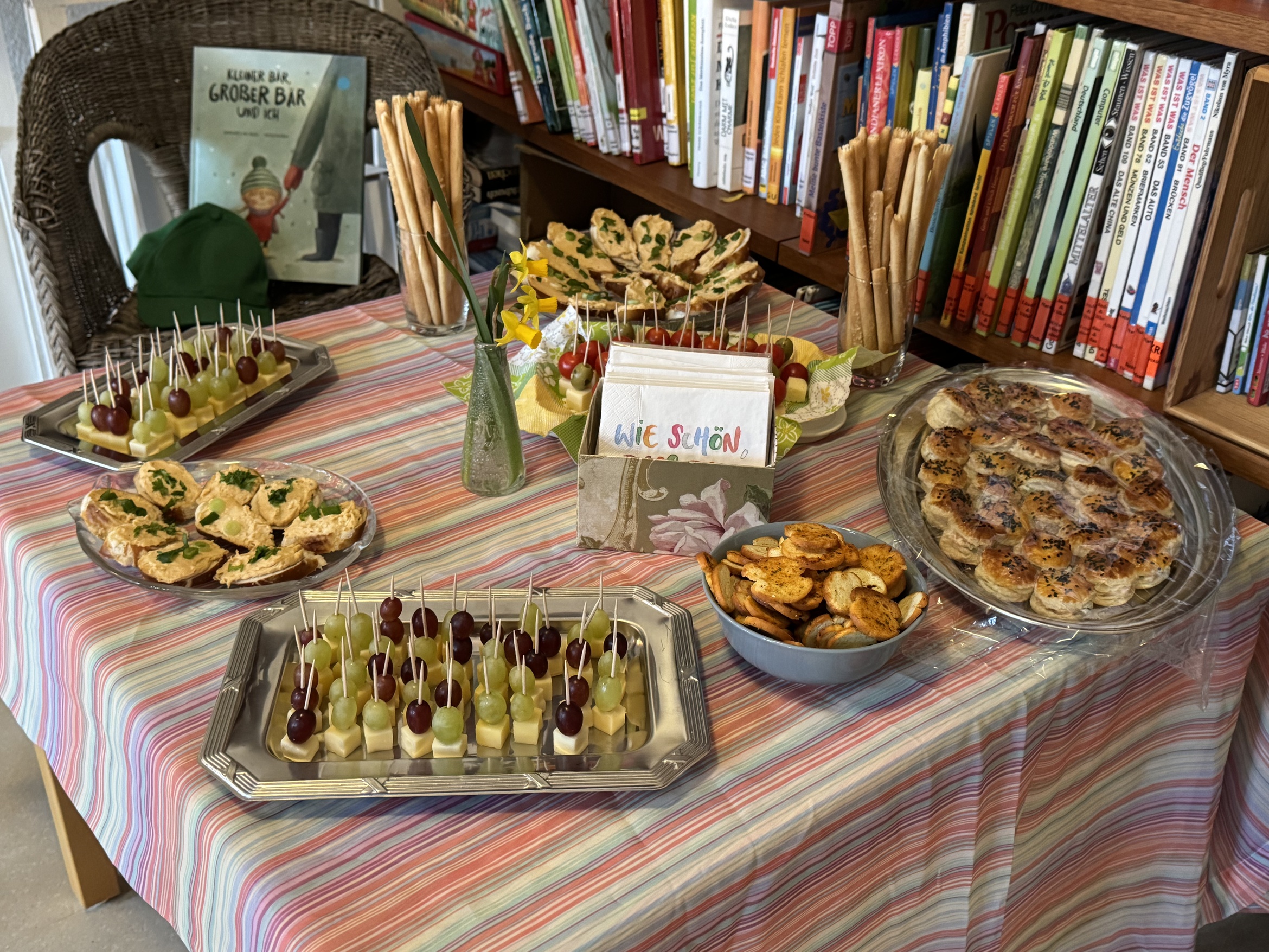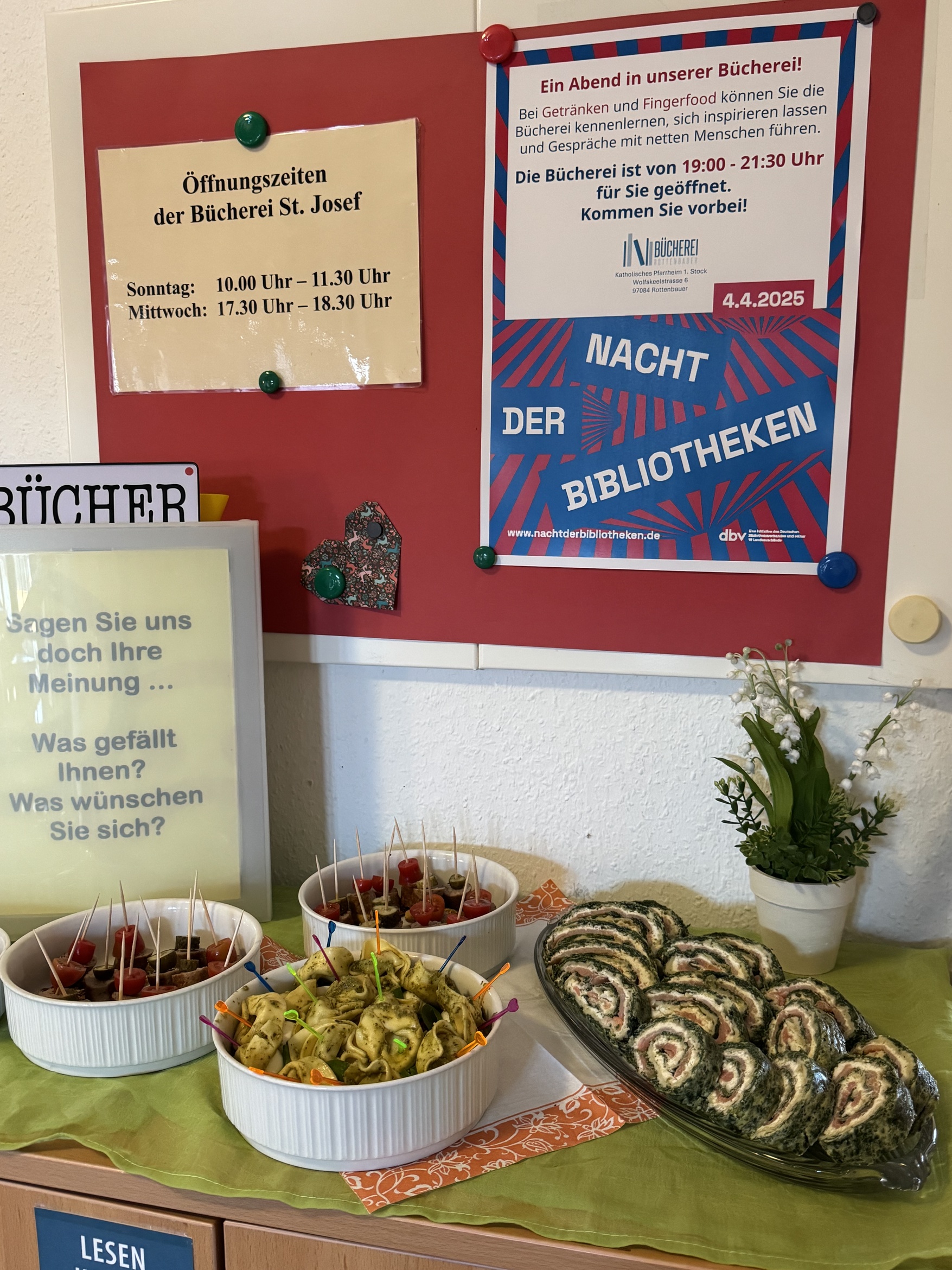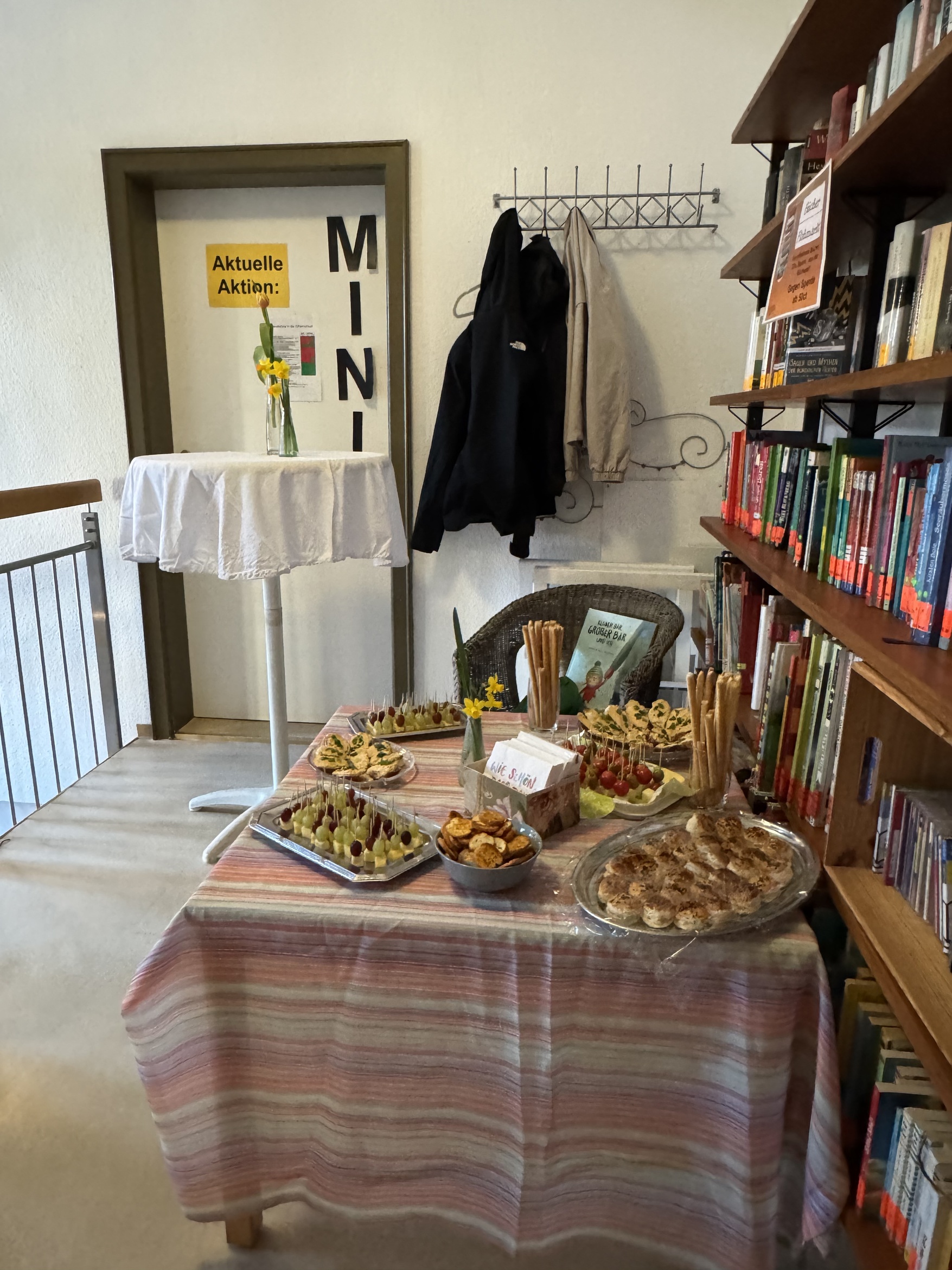 Bei Getränken und Fingerfood konnte man die Bücherei kennenlernen und sich bei netten Gesprächen den ein oder anderen Buchtipp abholen.