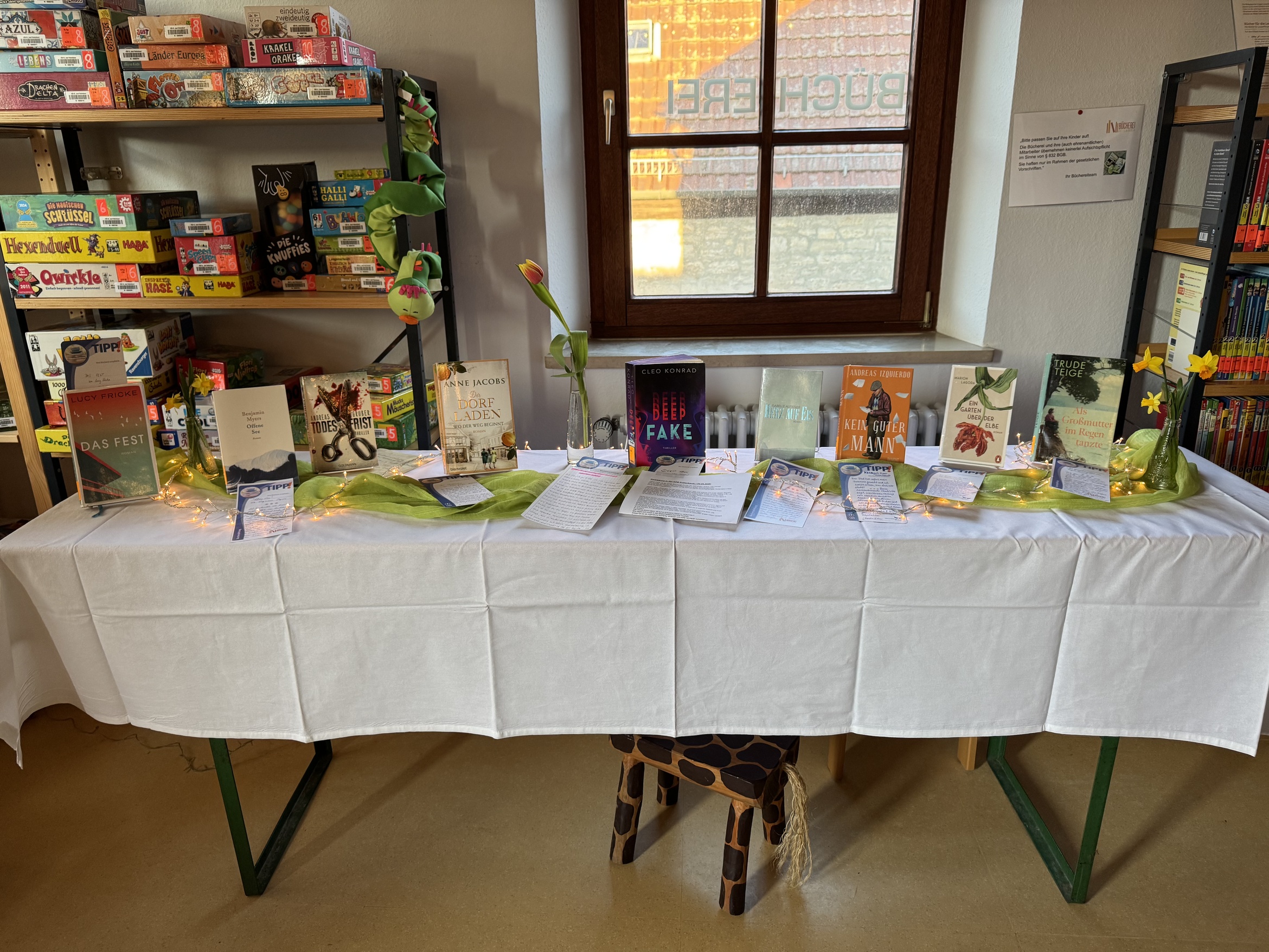 Das Büchereiteam empfahl ihre momentanen Lieblingsbücher, die mit einer kurzen Rezension ausgestellt wurden und auch gleich ausgeliehen werden konnten.